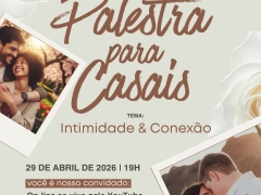 Serão 3 encontros transformadores, com conteúdos práticos e inspiradores sobre intimidade, conexão e a rotina do casal, conduzidos por palestrantes e psicólogos especialistas em relacionamento conjugal, sendo duas on-line, agora no dia 29 de abril, a outra no dia 27 de maio, e presencial em junho, também aberto a toda a população, previsto para o dia 26.