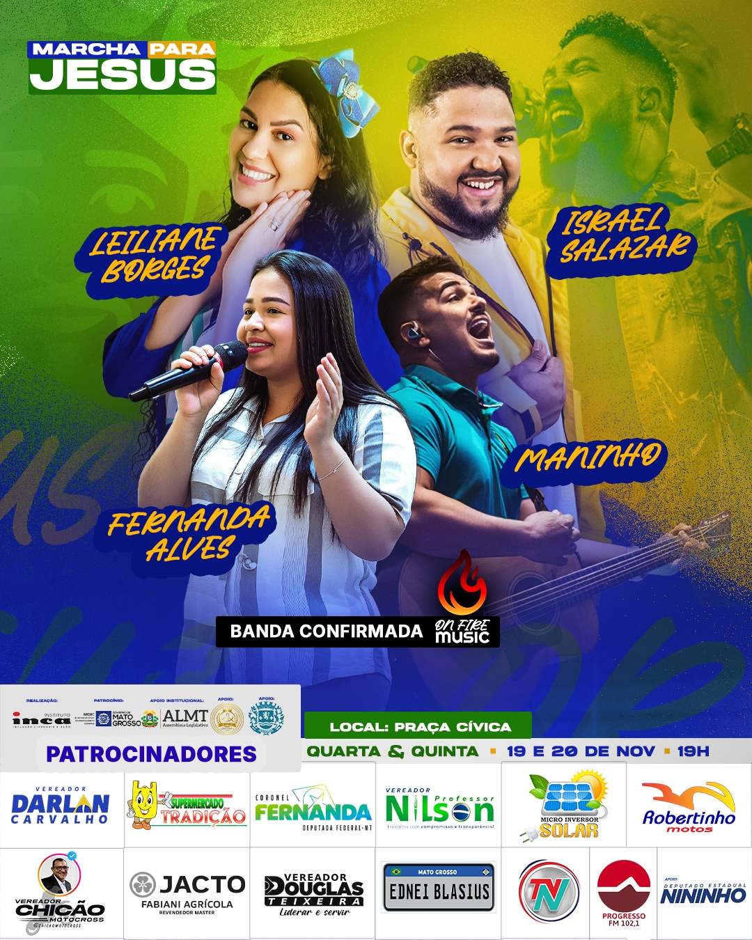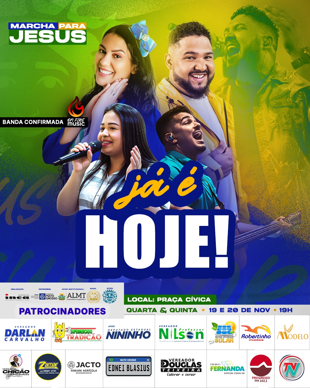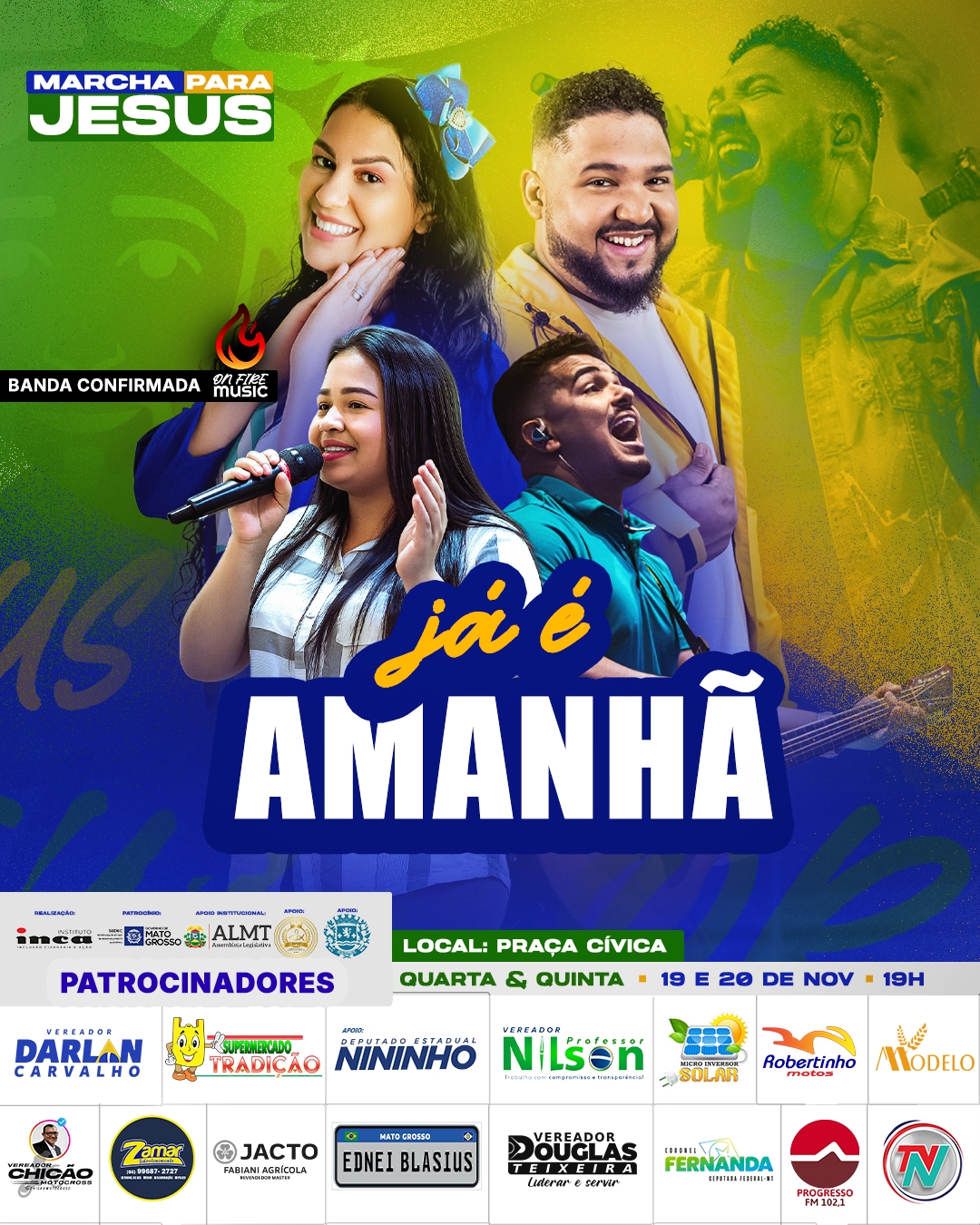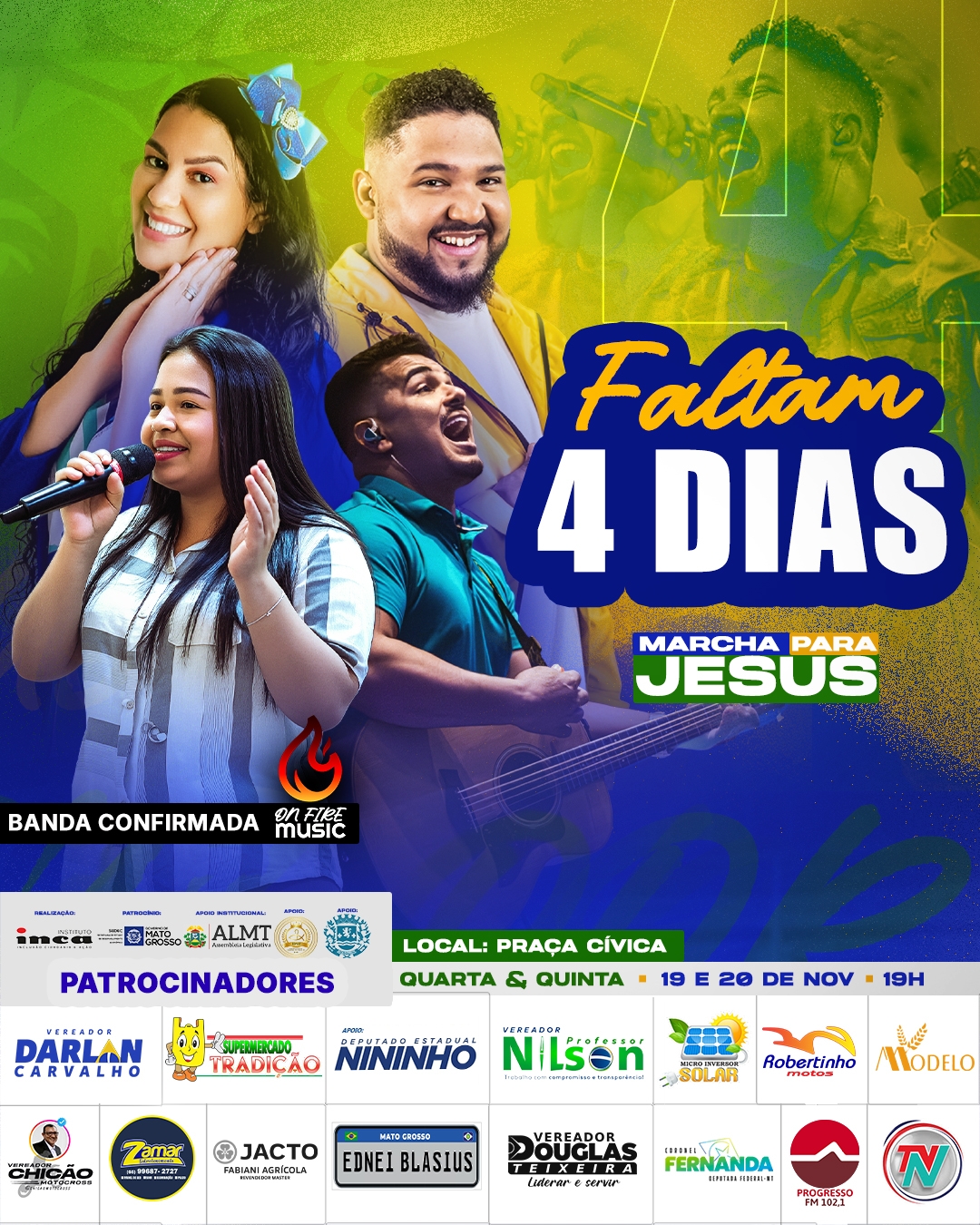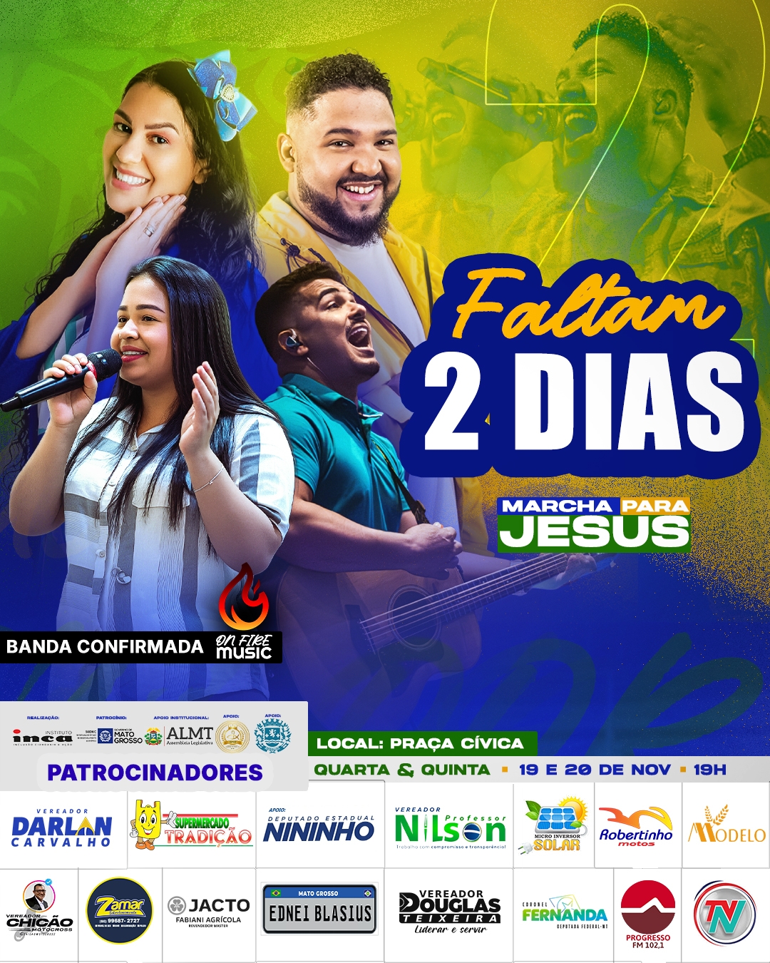 A cidade de Alta Floresta (a 791 km de Cuiabá) recebe nos dias 19 e 20 de novembro a 6ª edição da Marcha para Jesus, evento que integra o calendário oficial do município e se consolidou como uma das maiores manifestações de fé, integração comunitária e cultura gospel da região norte de Mato Grosso, sem levar denominação de igreja. Gratuita e aberta ao público de todas as idades, a Marcha deve reunir mais de mil participantes por dia, entre moradores, visitantes e caravanas de cidades vizinhas, na Praça Cívica, na Avenida Ariosto da Riva, localizada no Centro do município.